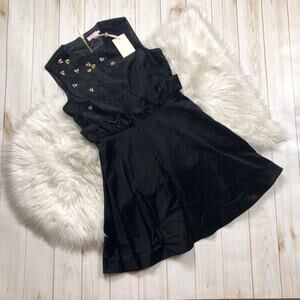 Ted Baker Women's Celeena Black Velvet Bee Short Sleeve Embellished Dress NEW
