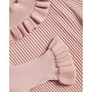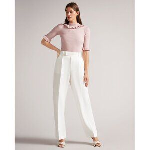 Ted Baker Women's Fitted Top Frill Neck Detail in Pink, Katella Size 0/US 2 New