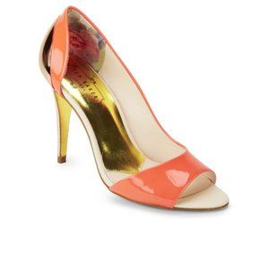 These Ted Baker Women's MACEEY Pink Patent Leather Peep Toe Heels are New With Box.