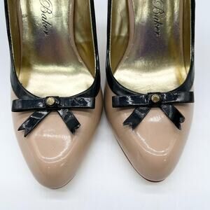 Ted Baker Womens Shoes Size US 6 Beige Black Bow Stiletto Patent Leather Glam