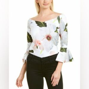Ted Baker Womens Size 0 White Veleita Chatsworth Bloom Bell Sleeve Top