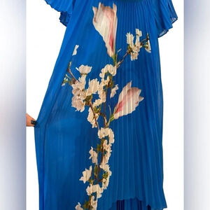 Ted Baker Women's Size 1/ US 4 Blue Floral Melma Harmony Accordion Pleat Dress. High low length.