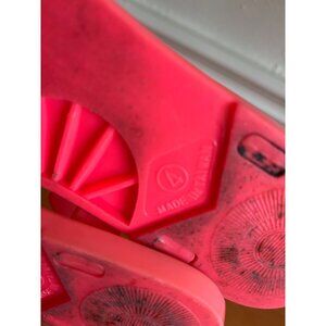 These Ted Baker sandals boast a chic bow detail and vibrant pink hue. Crafted from durable rubber, they ensure comfort and style for summer outings. The adjustable strap guarantees a perfect fit, making them an ideal choice for beach days or casual strolls.