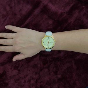 No scratches or marks on watch itself. Only worn a handful of times. Minor wear and tear on the inside of the watch band (see photos). Battery needs to be replaced.