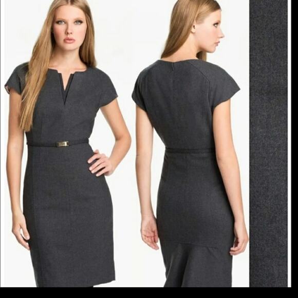 Ted Baker Wool Midi Sheath Dress Gray V-Neck Short Sleeve Size 0/ US 2