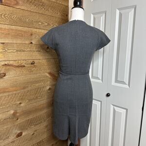 Ted Baker Wool Midi Sheath Dress Gray V-Neck Short Sleeve Size 0