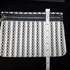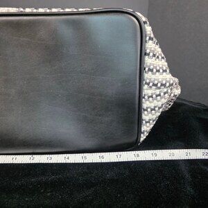Like new! Metal pulls are still wrapped. Includes large tote and zip pouch. Color is black and white with silver shimmer woven throughout.