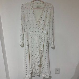 A beautiful white wrap dress with colorful metallic rainbow accents from Ted Baker. It's an eye catching dress