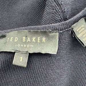 Ted Baker Yazmiin Knitted Frill Dark Blue Dress Wedding Event Womens Size (1)