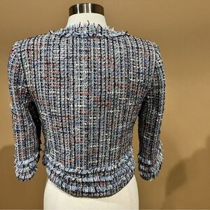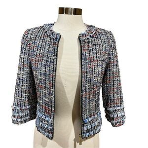 Ted Baker Yuliete Tweed Jacket Multicolor Size 0 Fringe Detail Zip Up