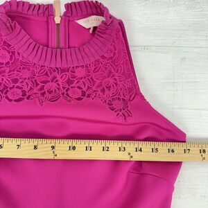 Ted Baker Zaffron Embroidered Skater Dress US Sz 6 Fuchsia Pink Ruffle Fit Flare