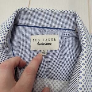 Nice Ted Baker allover print shirt! Long sleeve and collared with some contrast detailing. In excellent condition, size 15.5 34/35