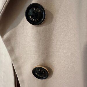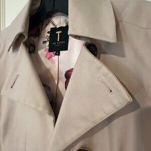 Ted Baker belted trench coat in light blush color with floral patterned lining. (Belt included but not pictured.) Black shiny buttons. Slim fit with slight flare at the hips. Size 0.