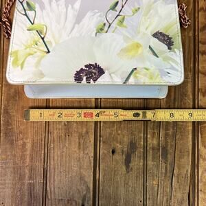 Ted Baker gray floral leather crossbody rose gold chain trim flap front