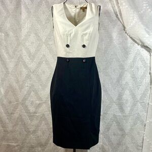 tags: fall, tuxedo dress, knee length, color block dress, cocktail dress, workwear, business casual, cocktail, birthday dress, event, tuxedo, holiday dress