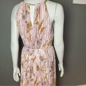 Ted Baker maxi dress size 8 Harpah Floral NWT pastel pleated gold chain straps