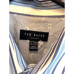 Stylish Ted Baker men's shirt with a 15.5-inch collar. Features a chic cotton stripe pattern, perfect for casual dress business Exceptional condition and made for comfort.