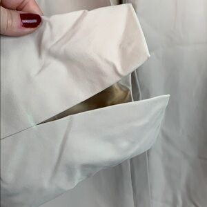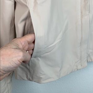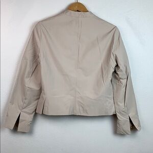 Minimalist design, lightweight with hidden zip front and mandarin collar. slash hip pockets.