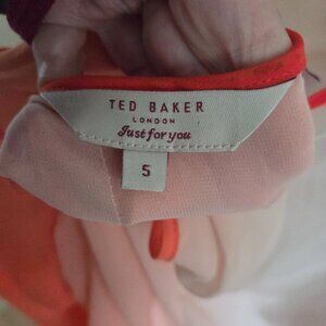 This Ted Baker orange ombre blouse with a sheer back in size 5 is a stylish and versatile addition to any woman's wardrobe. Made from lightweight polyester material, this blouse features a round neck, long sleeves, and a button closure. It is designed for a regular fit and is suitable for casual or business occasions during the winter and fall seasons. The bold orange color and tunic style make it a standout piece that can be dressed up or down to suit any event.