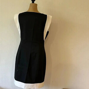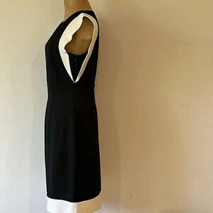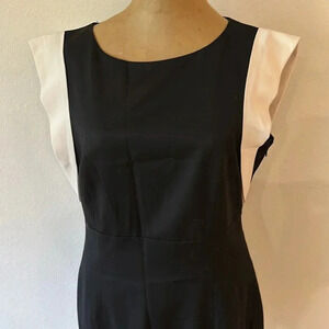 Ted Baker sz 3 or US M black white dress lined wool, silk side zip great cond