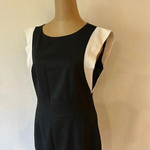 Ted Baker sz 3 or US M black white dress lined wool, silk side zip great condition