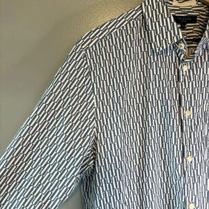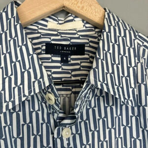 Ted Baker sz 4 (Large) Ruskin Retro Geo Print Cotton Button Down Blue & White