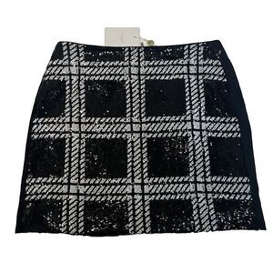 Ted Baker 4 Black White Hoopss Checkered Sequin Mini Skirt Size 12 US Windowpane