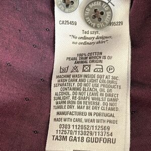 Ted Baker Dark Red Men Cotton Dress Shirt Front Buttons Long Sleeve