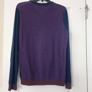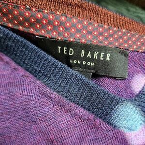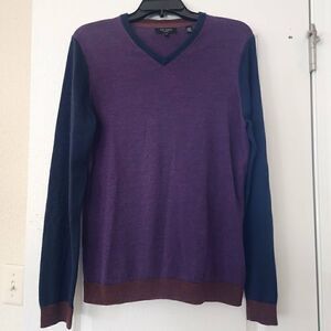 Men's Ted Baker merino wool sweater. 100% merino, V-neck, lightweight. Measures approximately 20" chest measuring from underarm to underarm and 28" long measuring from back collar to hem.