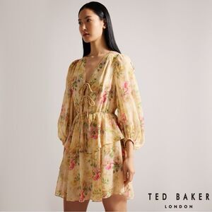 Ted Baker **NWT** Tamziiy Floral Print Tie Front Mini Dress, Tan