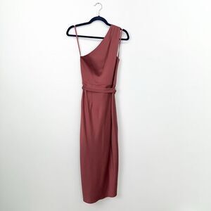 Ted Baker Women's Dark Rose Pink Gabie One-shoulder Satin-Crepe Midi Dress