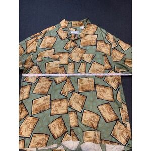Ted Lapidus Homme Paris Silk Shirt Vintage Horse Equestrian Stamp Print Size XL