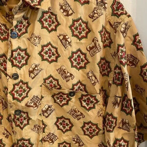 Ted Lapidus Mens 100% Equestrian Print Silk Shirt Button Down