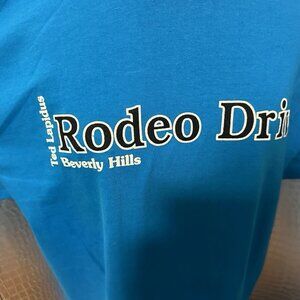 Never heard of Ted Lapidus? He was a French fashion designer considered the creator and pioneer of the unisex fashion look and is credited with introducing a military and safari look into haute couture. Honor this fashion icon with your very own vintage Rodeo Drive Tee. Bright blue with In very good condition. Size XL.