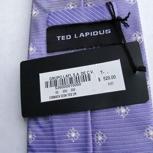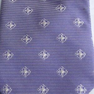Ted Lapidus lilac color tie with white floral medallions throughout the print.