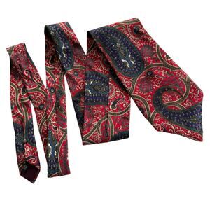 Ted Lapidus vintage 100% silk classic paisley tie red blue olive 3.75" w