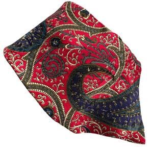 Ted Lapidus vintage 100% silk classic paisley tie red blue olive 3.75" w