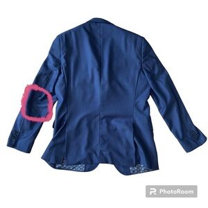 Ted baker Endurance Jay ct blue wool men’s sport coat. 100% fine wool. Notched lapel. English style double vent in back. Fully lined for easy on and off. Excellent condition but does have one flaw on the back of the left arm. See photo with approximate measurement. Not super noticeable when wearing. Retail was $798. Men’s size 42 regular. Measures approximately 21.5 inches flat across chest from armpit to armpit, 31 inches in length, sleeve measuring approximately 25 inches from shoulder seam, and shoulder measuring approximately 18 inches from shoulder seam to shoulder seam. Note- camera slightly auto corrected color in some of the photos. First two photos give accurate color.