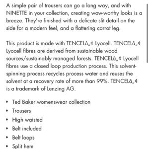 Ted baker NINETTE High Waist Carrot Leg Trouser size 0 ivory