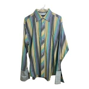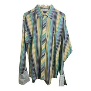 Ted baker mens button down dress shirt French cuff striped colorful. Size 161/2.
