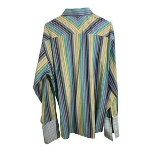 Ted baker men’s dress shirt French cuff. Striped colorful. Size 16.5 34-35