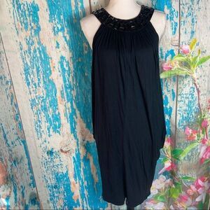 Euc jeweled neckline draped sides mini dress