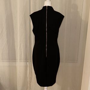 Ted Baker 14 (5) Black Geodese V Neck Front Slit Back Zip Sleeveless Shift Dress