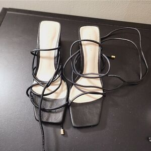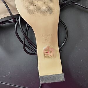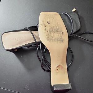 worn once once, shows a little scuffle on one of the heels that is not at all obvious.