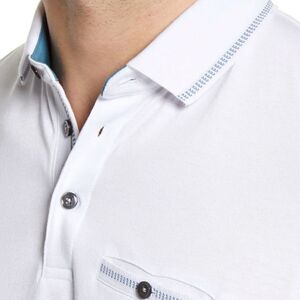 Ted Baker 6/XL White Blue Short Sleeve Cotton Blend Lightweight Polo