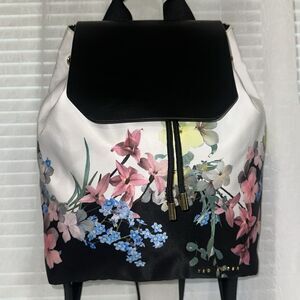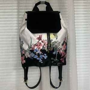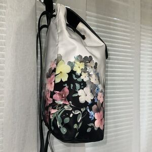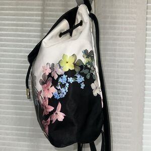 Ted Baker ALLIZZA Woven White Black Floral Faux Leather Drawstring Backpack