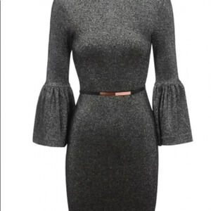 Ted Baker London Bell Cuff Metallic Sheath Black Dress