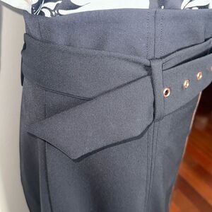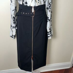 Ted Baker XL (5) Black Kaara Midi Front Zip High Waist Belted Pencil Skirt