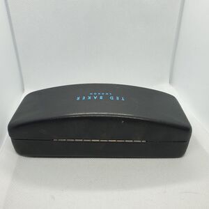 Ted Baker London black sunglasses case with blue letters and blue lining.