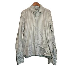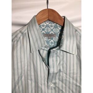 Ted Baker London Shirt Mens Size Large Long Sleeve Buttons Cotton Stripe Green. Condition is Pre-owned. Shipped with USPS First Class.